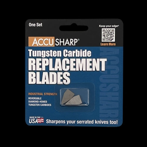 These blades fit all products except ShearSharp®. For the best possible sharpening edge, AccuSharp uses the finest American-made diamond honed tungsten carbide available. The result is the finest line of carbide sharpeners on the market today, at any price. These blades are reversible for double life and most users report an average life of 5 to 10 years between replacements. Beware of other brands that use cheap imported carbide! Insist on AccuSharp®.