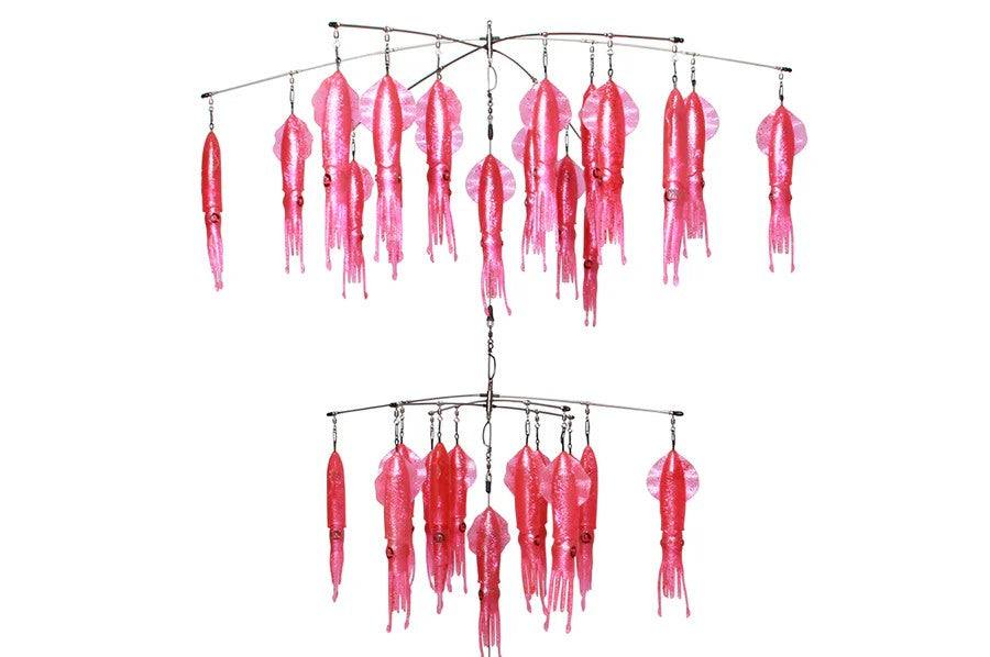Made with stainless steel bars, quality rigged connections, and 9" Fathom Offshore FS30 Vivid squids in a variety of colors, this easy to breakdown pro quality system is sure to become a favorite.