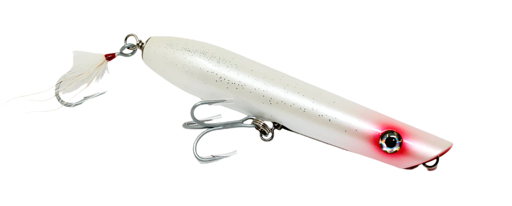 Tsunami Timber Lure Pencil Popper Plugs do a great job of attracting fish. Pop and slash this lure to imitate fleeing baitfish, or reel it in slowly with a "walk-the-dog" action that game fish can't resist. Outfitted with VMC® 4X perma steel hooks. Handcrafted from northern basswood with heavy-duty, stainless steel, through-wire construction and split rings. Durable and long-lasting triple epoxy-coated finish. Work it on the surface or use a slow retrieve.